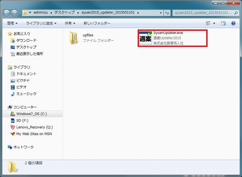 3.展開したフォルダ [ syuan2023_installer.zip ] の中にある「SyuanUpdater.exe」をダブルクリックします。