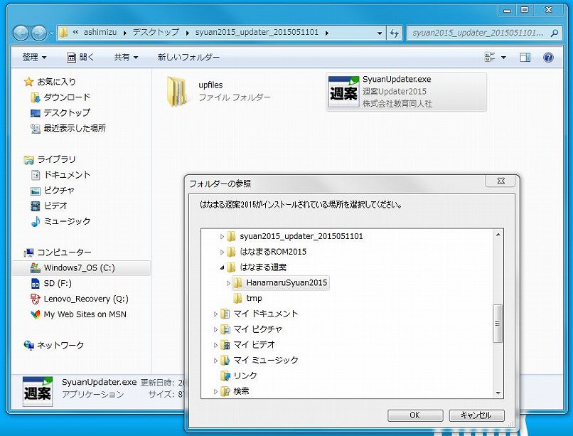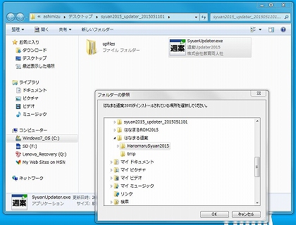 4.「フォルダの参照」が表示されるので、はなまる週案がインストールされているフォルダを指定し、OKをクリックします。